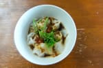 With chicken or pork, and soy-chili sauce