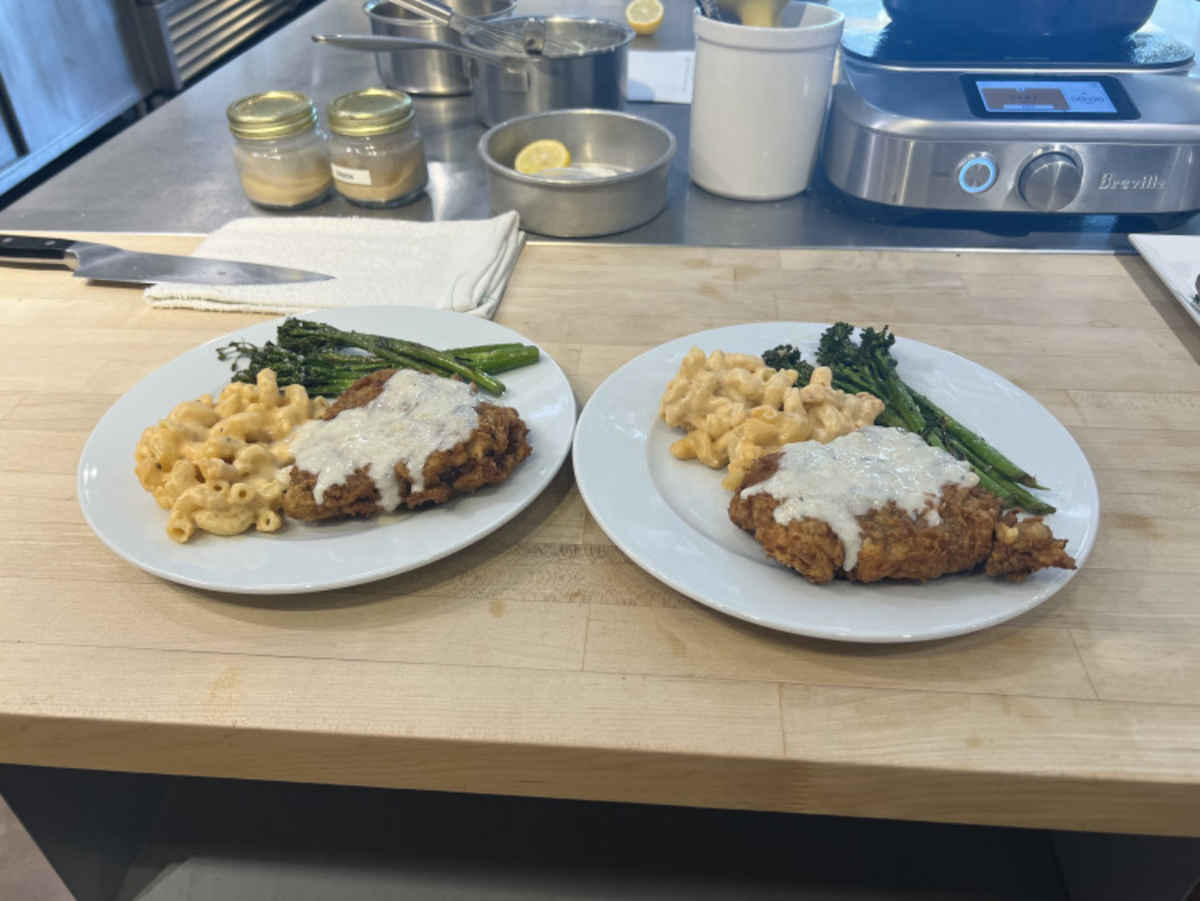 We made chicken fried steak, broccolini, and mac & cheese — and everything turned out so delicious! The two hours flew by because it was such a fun, engaging, and encouraging experience.
