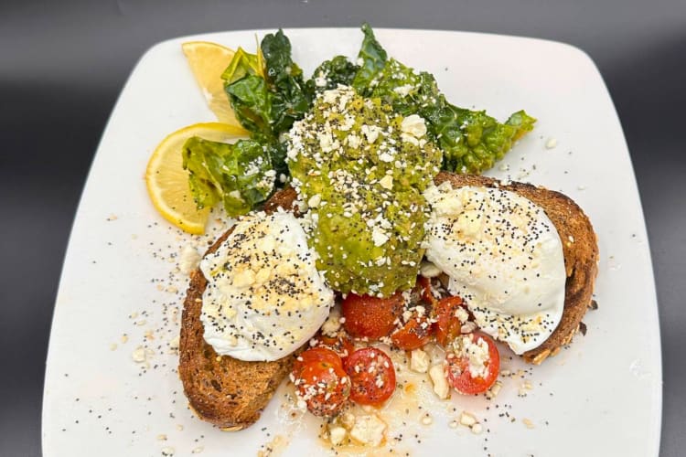 The avocado toast features thick slices of artisanal bread topped with creamy avocado, heirloom tomatoes, microgreens and a sprinkle of flaky sea salt. To indulge your sweet tooth, choose the bananas and peanut butter bourbon waffles topped with whip.