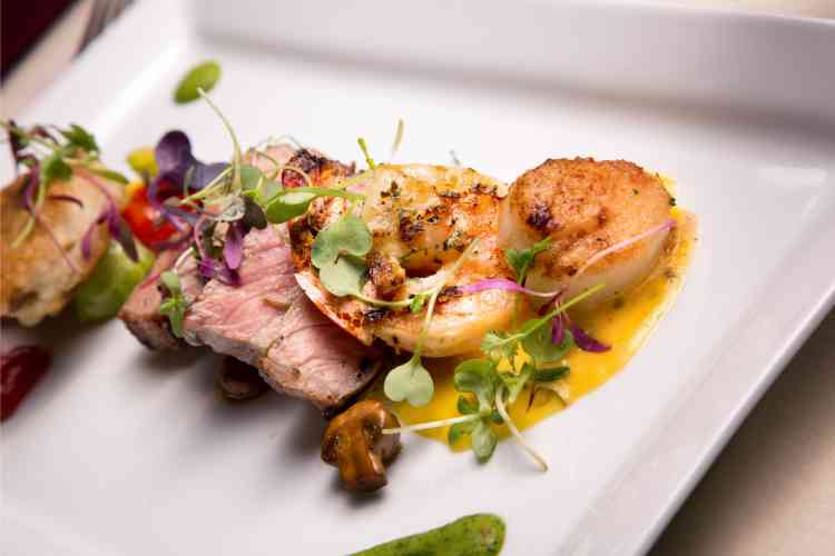 Delight in exquisite dishes like lobster gnocchi fricassée or the spiced Long Island duck breast, paired with one of the many wines available by the glass.